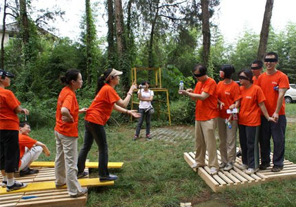 西雙版納企業(yè)員工會議會展戶外拓展訓(xùn)練團建公司之拓展培訓(xùn)項目:破冰游戲《穿越地雷陣》