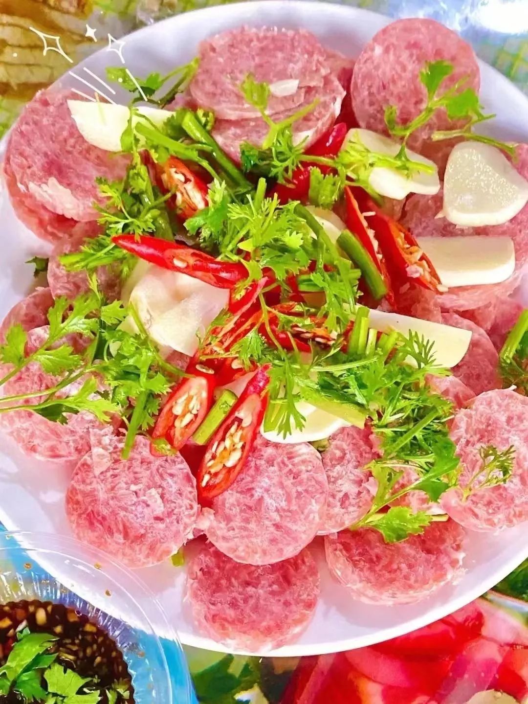 腌制完成的酸肉,顏色粉嫩、味道爽口,對于初次嘗試傣族酸肉的食客來時,第一口酸肉就是一次挑戰(zhàn)。用酸肉蘸取芥末醬油,搭配新鮮蒜片、小米椒和小芫荽一起入口,讓食客一瞬間感受酸、辣、鮮香的刺激三重奏。若實在吃不慣生酸肉的食客,也可將酸肉進(jìn)行蒸煮或與其他菜一起炒制,感受酸肉獨特味道帶來的不一樣驚喜。