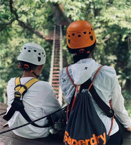 設(shè)計了這種在大樹上建立平臺和平臺之間拉接纜繩的模型,這就是叢林飛躍的前身。叢林飛躍項目位于森林里,高山聳立,