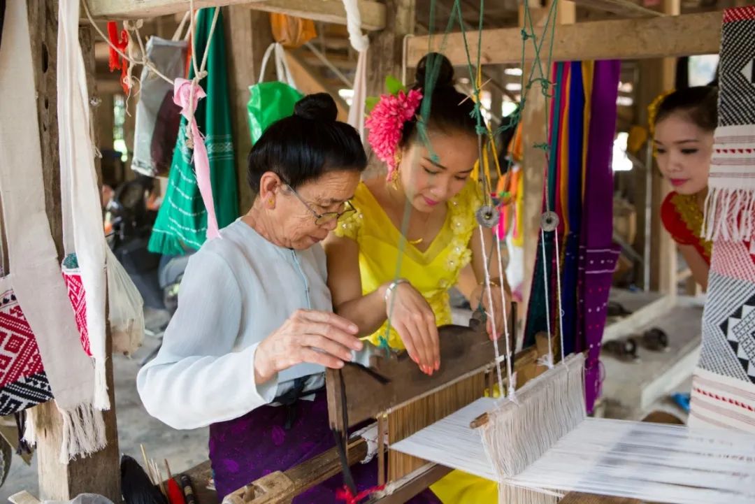 可以跟隨師傅學習如何編織色彩斑斕的傣錦