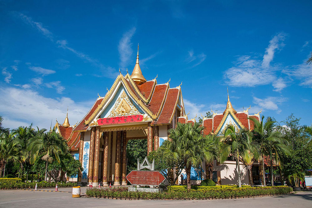 位于距景洪市27公里的勐罕鎮(zhèn),園內(nèi)有五個(gè)傣族自然村寨。這里景色秀麗,民風(fēng)淳樸,充滿著詩情畫意,一年四季青翠嫩綠、竹林環(huán)繞、果木成林、香蕉、椰子、檳榔、菠蘿密、芒果,給寨子灑下了一片片濃濃的綠蔭,幢幢竹樓掩映在青樹綠竹之中,陣陣熱帶花開的幽香隨風(fēng)送來,一片清幽恬靜。古色古香的佛塔,佛寺與旖旎風(fēng)光相互掩映,形成了具有獨(dú)特佛教文化內(nèi)涵的風(fēng)景名勝和園林景觀,給人予一種新奇,美妙和寄托美好愿望的感受,所以素有“綠孔雀羽翎“的雅稱。