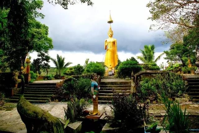釋迦牟尼站佛是由曼飛龍村民捐款建造的,通高7米重7噸,寓意著釋迦牟尼是在菩提樹下打坐七七四十七天參悟成佛的,戰(zhàn)佛坐西向東,手掌向外、手指自然舒展,這一手印象征釋迦牟尼為救濟(jì)眾生的大慈星愿,能使眾生得意心安,遠(yuǎn)離恐懼。