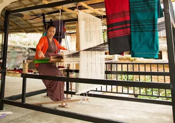 傣族織錦是傣族人民上千年的編織技藝和審美觀念的結(jié)晶,是一門非常古老的紡織工藝,在傣族社會(huì)生活中占有比較重要的位置,人們的衣食住行等物質(zhì)生活和鬼神崇拜、宗教信仰等物質(zhì)生活都與傣錦密切相關(guān)。傣錦源于遙遠(yuǎn)的農(nóng)耕時(shí)期,體現(xiàn)的當(dāng)代傣族家庭男耕女織的社會(huì)分工,是經(jīng)歷了漫長歲月的自給自足、自產(chǎn)自用的庭院經(jīng)濟(jì)之一。