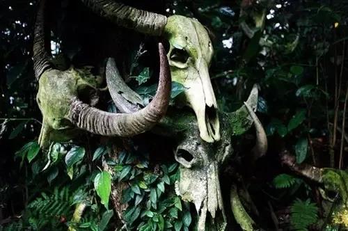 走在村寨的小路上,可以看到路面上刻著許多太陽和牛角圖案。切溫說,太陽是基諾人的圖騰,基諾人喜歡在衣服前襟或者后背繡上太陽圖案。牛頭圖案則與基諾族的成年禮有關(guān)。寨子里的孩子到十五六歲的時候,就要舉行成年儀式。父母要送給兒女一整套生產(chǎn)工具和成年人的衣飾,女孩子要梳成年人的發(fā)式,男孩要剽牛,牛肉用芭蕉葉包好,分送給寨子里的各家各戶,同時接受大家的慶賀,牛頭掛在樹干上作為裝飾。在基諾人眼里,牛頭多的家庭或者村寨表示人丁興旺。