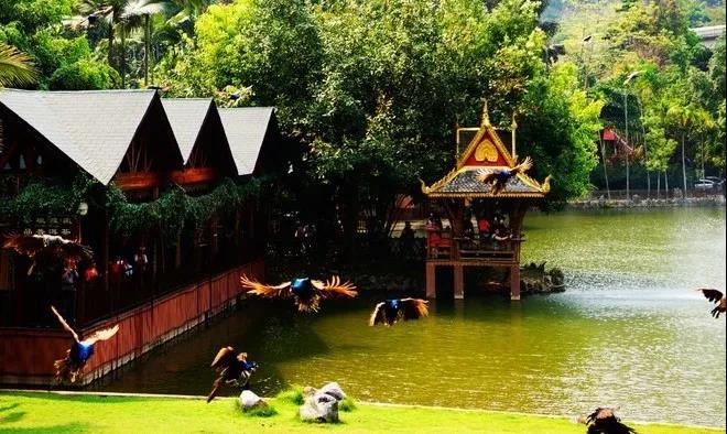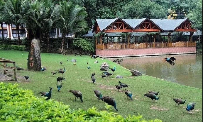 園里有孔雀山莊、猴子馴養(yǎng)基地、曼雙龍白塔等50多個景點。亞洲象,犀鳥,黑冠長臂猿都生活在這片熱帶叢林里。