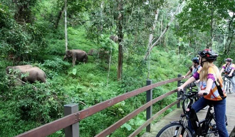 在野象谷景區(qū),游客可以通過高空觀象棧道、雨林觀光索道、亞洲象博物館等多個(gè)游覽項(xiàng)目,讓游客得以在不干擾亞洲象生活的條件下安全地觀察亞洲野象及其生存環(huán)境,還可以聽飼養(yǎng)員講每頭大象特別的故事,與頂級流量的象界網(wǎng)紅會(huì)面拍照;園內(nèi)還有蝴蝶園、百鳥園等,讓游客了解熱帶雨林里的生靈萬物。