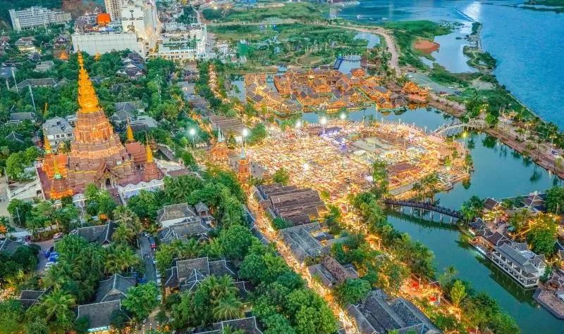 “人間煙火氣,最撫凡人心”,瀾滄江畔,金塔佛寺之下,一個(gè)華燈初上、熱鬧非凡的星光夜間集市能滿足你對人間煙火的所有想象。這個(gè)浪漫的夜市,融合了濃郁的東南亞風(fēng)情,集美食、佛教文化、民俗工藝于一體。