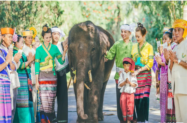 傣族園南傍瀾滄江,北依龍得湖這里的傣家人如水一般溫柔靈動一灣江水養(yǎng)育著一方人一方人守護著一灣江水從古至今“水”在傣族文化中無處不在彰顯著這個民族對水的依戀。