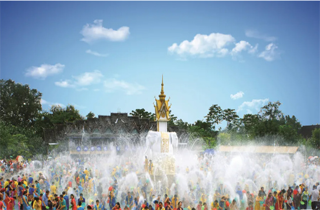 漫步園內(nèi)欣賞著獨具特色的傣家竹樓身著精致服飾的哨多哩在路上與你擦肩趕著去一場潑水狂歡傣家與水緊密相連熱情的傣族人會用蘊含幸福、健康的朵朵水花熱情歡迎遠道而來的游客冒多哩在一旁敲打象腳鼓所有的祝福都融入了歡歌笑語中