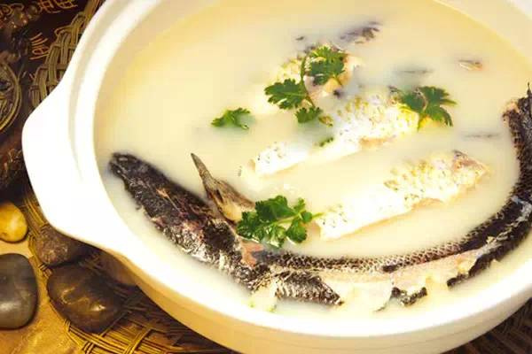 卵石鮮魚湯是布朗族的特色菜,魚湯鮮美味甜,而且具有燒石的干香味。制作時,將河中卵石取來放到火塘中燒紅,又將燒紅的卵石一個接一個地放入盛有清水和鮮魚的鍋內(nèi),直至使水沸騰,然后又將燒紅的鹽塊放入,鮮魚湯便燒成了。