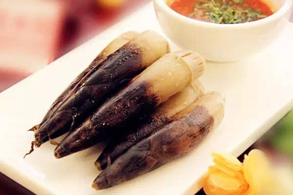 苦筍是傣族人最愛吃的一種素菜。吃苦筍最講究佐料,人們稱這種佐料為“喃咪”。喃咪是由菜、番茄、竹筍、辣椒、魚、黃鱔、花生等制成,比較簡單,最普遍的是用西紅柿制作的南秘。吃的時候只要拿燒好的苦筍蘸上“喃咪”即可食用。