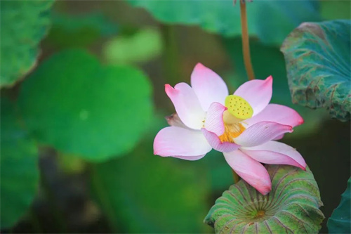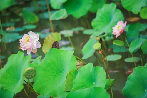 荷花池里連片的荷葉次第鋪開,粉紅的荷花嬌艷綻放,翠綠的荷葉、鮮艷的荷花倒映在碧水之上,零星的蓮蓬點(diǎn)綴其間,灼灼動人。習(xí)習(xí)清風(fēng)吹來,荷葉翩翩起舞,偶爾透出淡雅的荷香,讓人心曠神怡。
