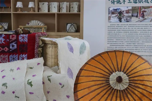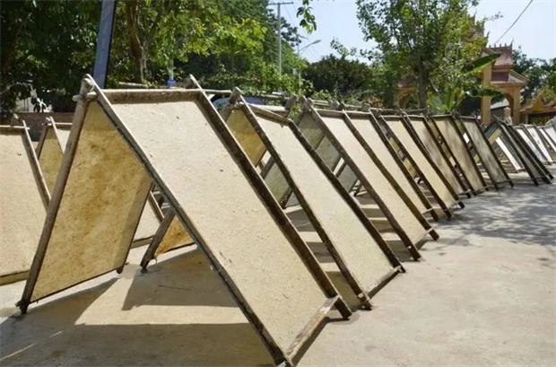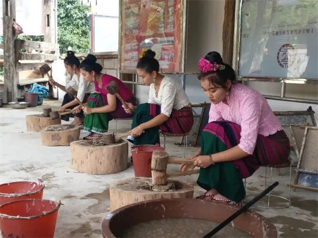 傣族傳統(tǒng)手工造紙術(shù)有著悠久的歷史,傣語(yǔ)稱這種紙為“嘎臘”,2006年,傣族造紙工藝被納入首批國(guó)家級(jí)非物質(zhì)文化遺產(chǎn)名錄和云南省第一批非物質(zhì)文化遺產(chǎn)保護(hù)名錄。傣紙制作主要以構(gòu)樹皮為原材料,經(jīng)過(guò)“浸泡、蒸發(fā)、搗漿、澆紙、曬紙”共5步流程11道工序才算制作完成,在制作過(guò)程中除一口鐵鍋外,制作器具皆采用竹木器具輔以石塊進(jìn)行,因傣族造紙始終保留著較為傳統(tǒng)的制作流程和制作技藝,讓傣紙始終保持著天然、古樸的特性。