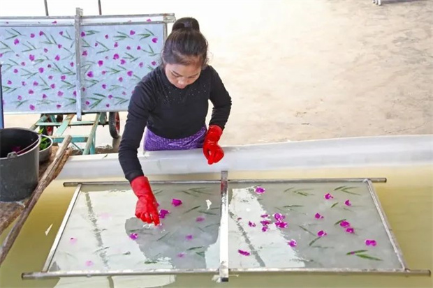同時(shí),因傣紙透氣性高、柔韌度強(qiáng),成紙可保存百年不蛀的特點(diǎn),曾成為周邊地區(qū)傳統(tǒng)宗教、文化和經(jīng)濟(jì)活動(dòng)用紙的首選,之后隨著普洱茶的熱銷,手工造紙以其紙張厚、耐折皺、易吸水的特性成了包裝上等普洱茶餅的首選用紙。據(jù)了解,曼召村每年可生產(chǎn)一千多萬(wàn)張不同規(guī)格的傣紙,年產(chǎn)值達(dá)900萬(wàn)元以上,紙張也會(huì)銷往全國(guó)各地和日、韓等國(guó)家。